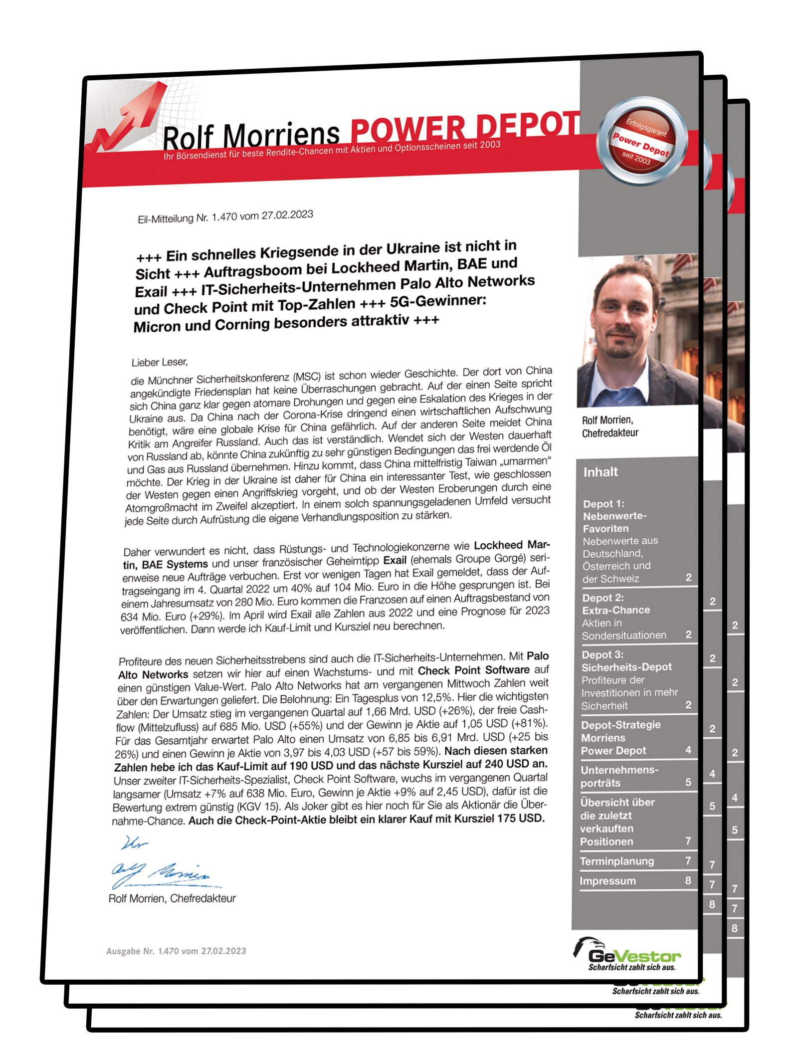 Ihr 30-Tage-Test von Rolf Morriens Power Depot inkl. der wöchentlichen Ausgaben mit Ihren Investment-Empfehlungen.